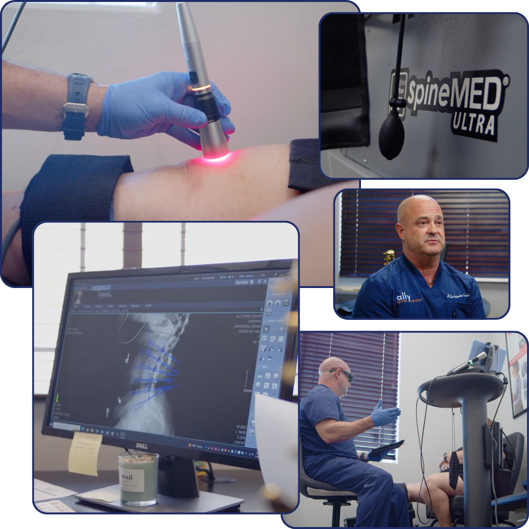 Ally Spine Center offers corrective chiropractic care, non-surgical spinal decompression, class IV laser therapy, and treatment for back, neck, knee, sciatica, disc injuries, headaches, and extremity pain.